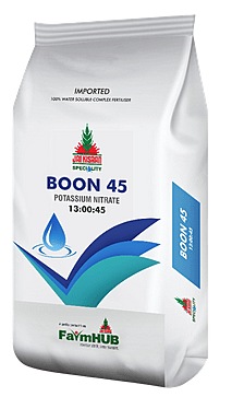 -The presence of nitrate has got synergistic effect on uptake and absorption of potassium by the plant. - Maintains ionic balance within the plants and promotes early maturity. - All the N is immediately available for plant uptake as nitrate, requiring no additional microbial action and transformation in the soil. - High N: K ratio of 1:3.5 makes it suitable for high K needing crops like banana. - Sprayed during fruit formation and development stage. Reduces immature fruit dropping. - Increases the fruit size, flavor, sugar content and shelf life of produce. - Compatible with most of the pesticides.
